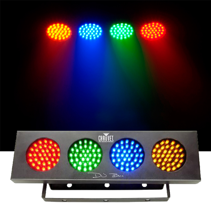 Made by Chauvet, one of the most respected brands in the lighting business, our DJ Bank is incredibly affordable and will make a huge difference to your event. The 4 colour LED lighting clusters will flash in sequence in time to the music for a professional lighting effect that will bring back great memories of school discos! The use of LEDs ensures that the unit doesnt generate heat and is therefore totally safe.